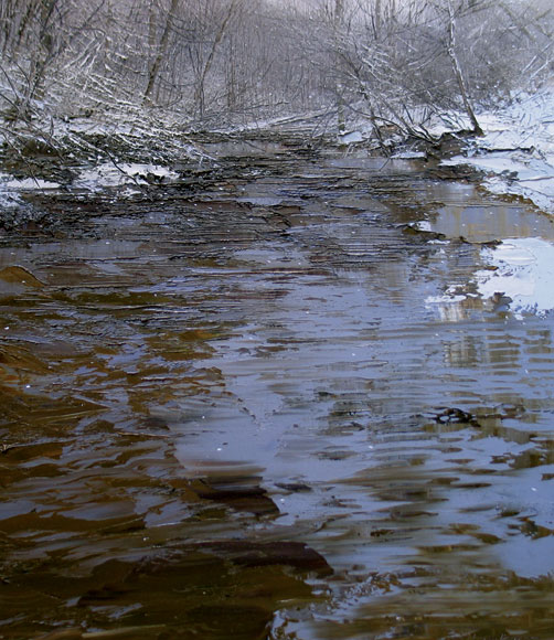 On Friday, February 24th, 2012 from 6:30-9:00pm we’ll be opening our annual exhibition for Lynn focusing on his winterscapes. Last year we were all stunned by a 64 x 54 inch canvas that Lynn captured after putting chains on his truck tires and making a long, treacherous trek into the depths of his Canvas, West Virginia property. It was just magnificent!