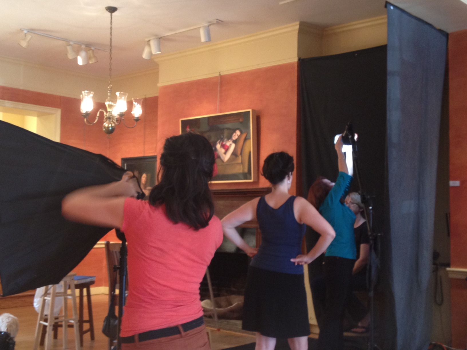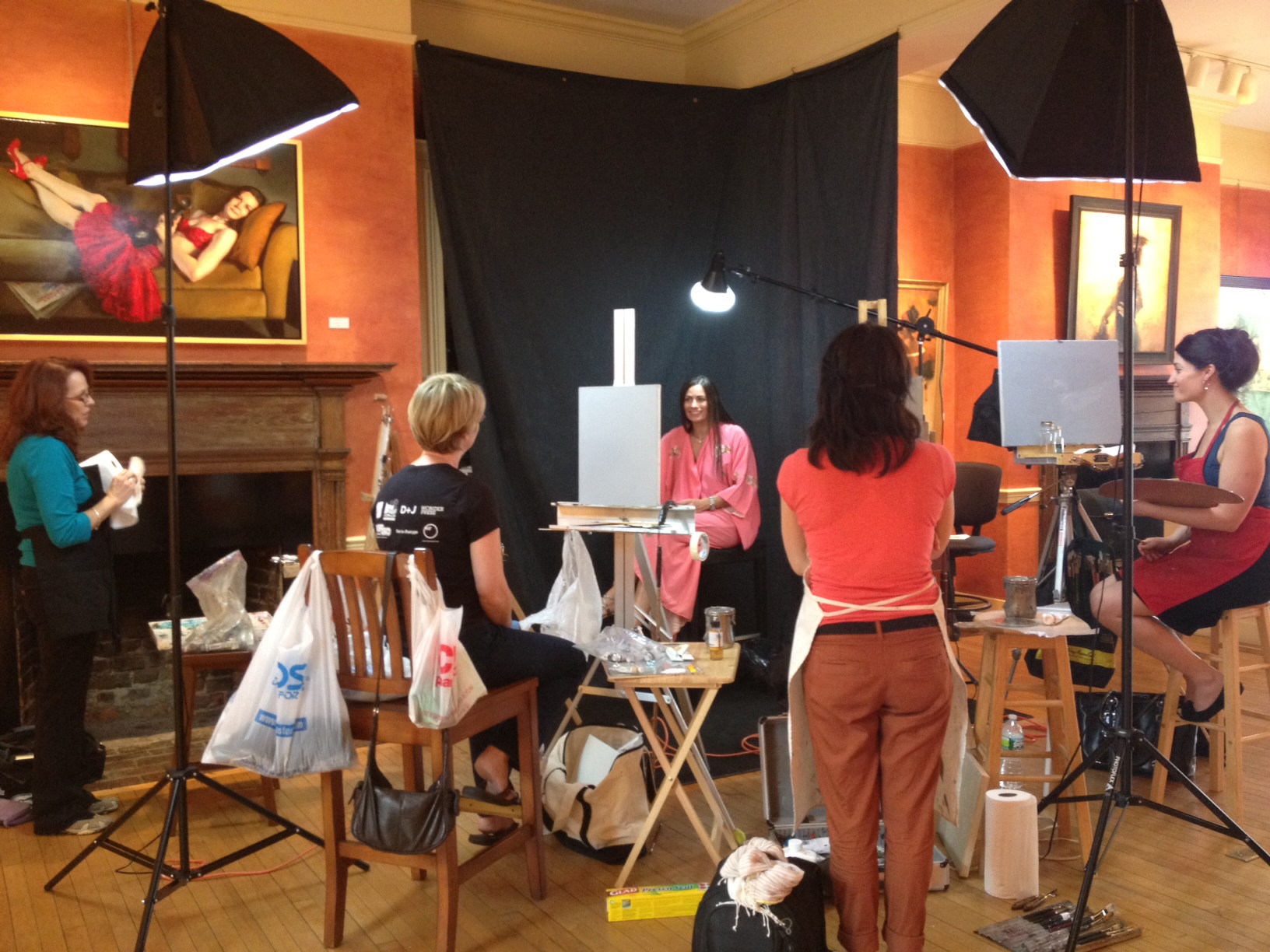 We are starting to get excited for tonight’s Women Painting Women: Face Off Demo featuring Mia Bergeron, Rachel Constantine, Cindy Procious, and Terry Strickland from 6:30-9pm! The ladies arrived yesterday and already had ideas running through their head about the set-up!