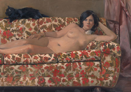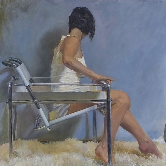 Art history buffs will appreciate Linda’s nod to Manet’s odalisque “Olympia”, and the familiar Bauhaus chair in these two paintings. We were tickled pink when these images were sent to the gallery! We can’t wait to see Linda’s paintings in person when they arrive later this week.