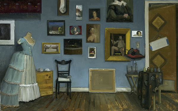 One of the most charming and unique pieces in December’s Small Works show was a lovely interior, Studio Interior (shown below), by Korean-American artist Hyeseung Marriage-Song. Today we just wanted to take a moment to highlight two other pieces by Hyeseung that we currently have at the gallery.