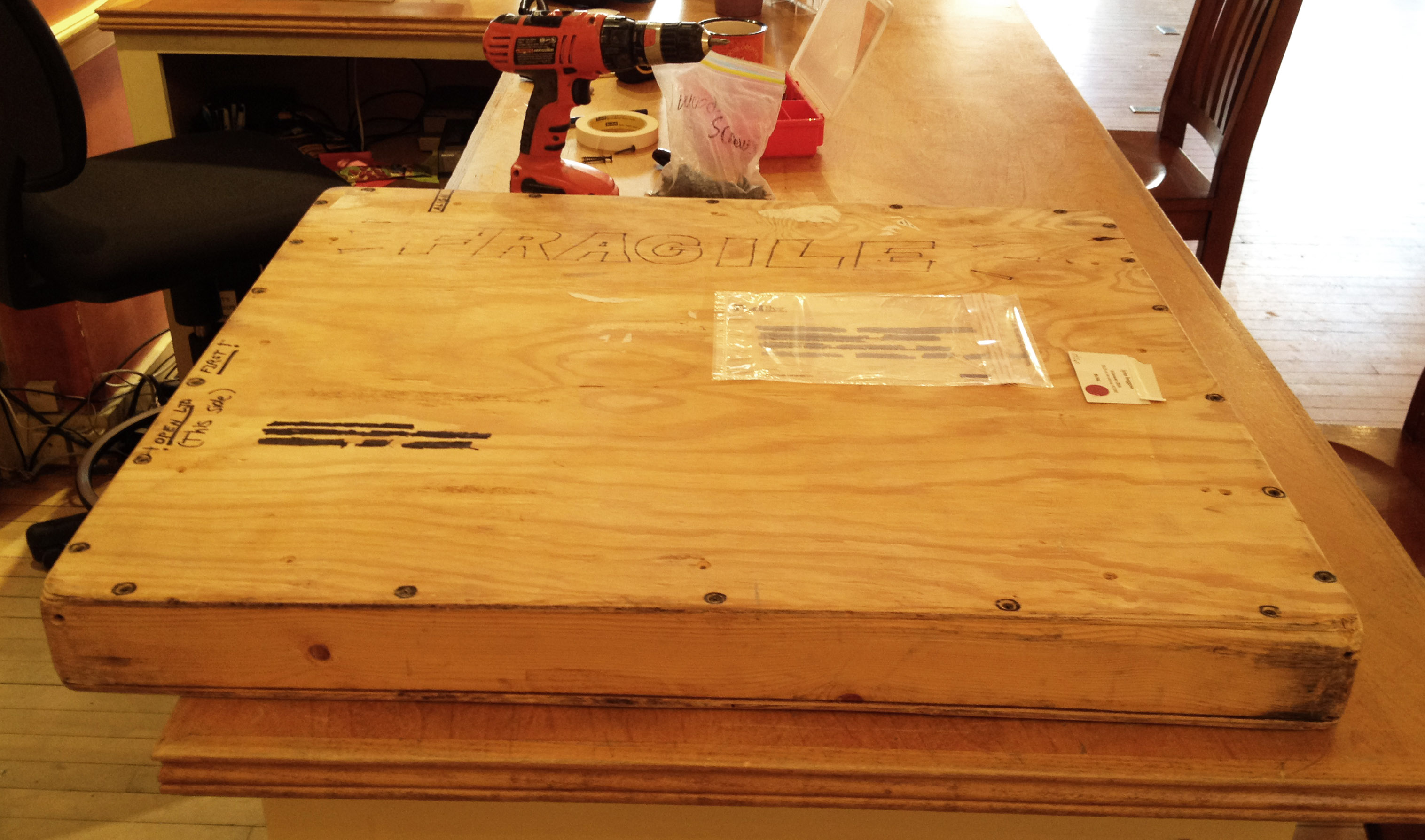 And next, we secure the whole thing by screwing together the stretcher boards and the crate!