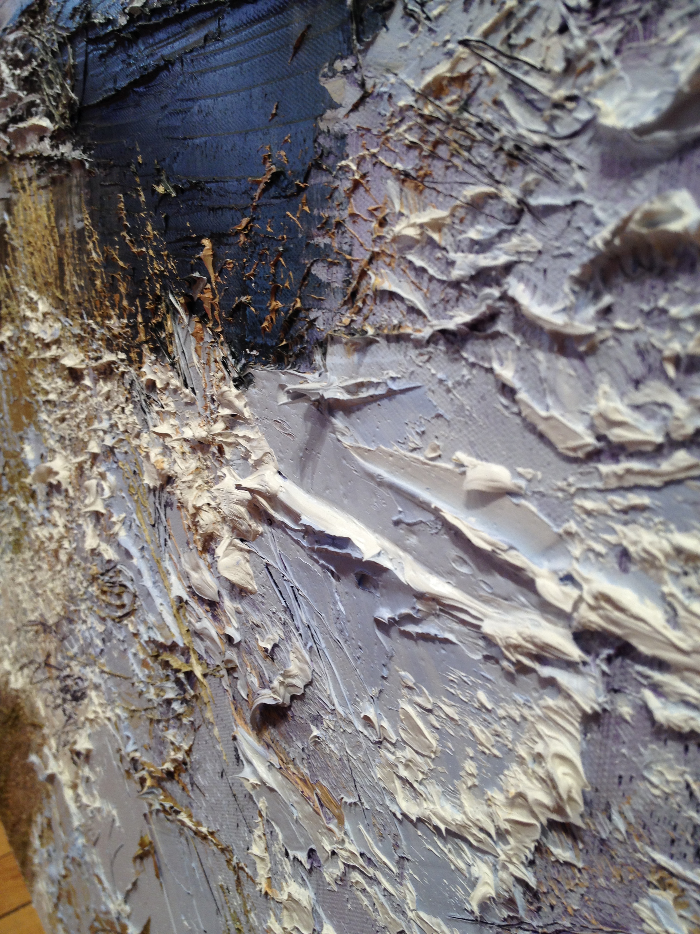 One of the most captivating aspects of Lynn’s work is the incredible texture he achieves through his unique tools and painting methods. Here’s a close-up photo to show you an example: