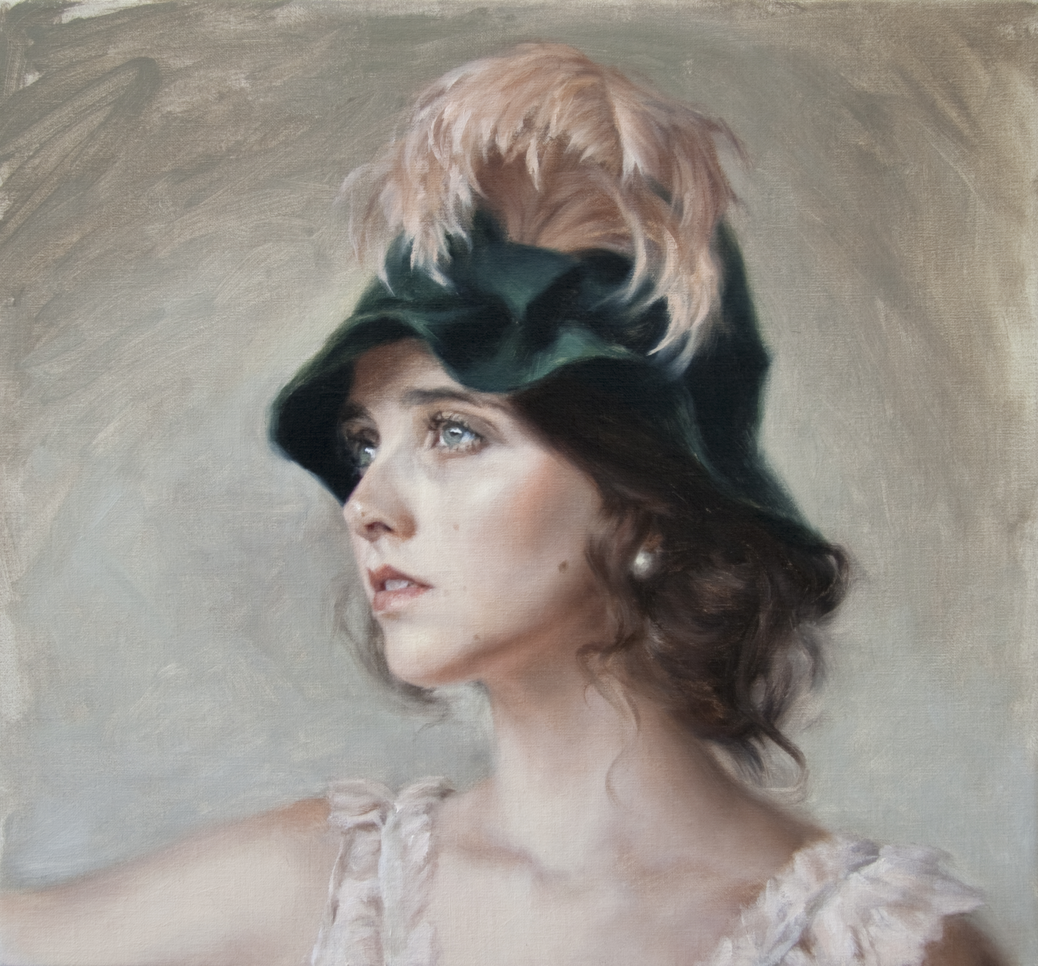 Originally from Chicago, Amy Lind now lives and works in Savannah, GA and has made quite the name for herself as a painter, particularly of portraits. Amy is known for her amazing ability to capture the “essence” of a subject in her painting. Though still quite young, Amy has already accumulated a great number of awards and accolades, including receiving the title of Southwest Art magazine’s “Artist to Watch: the Editor’s Choice for Up-and-Coming Talent,” honorable mentions from the Art Renewal Center’s International Salon, and having her paintings published in the New York Times best-selling children’s book “Marcel the Shell With Shoes On: Things About Me.” Skillfully created and infused with luminosity and a sense of tranquility, Amy’s work is beautiful, fresh, and exciting. Below is one of the two works from Amy featured in May’s show, entitled “Worthy of Love.”