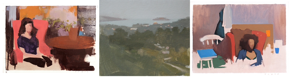 “I’ve been enjoying painting these abstracted figures in my studio from life, having fun with color, and trying to see how simple I can get while still being honest and attempting elegance,” Felicia says. “The idea was to find a way to pleasingly abstract the scene in front of me, using the facts at hand in the most economical way possible, I found it so much fun that I began to paint more like it whenever I needed a break from straight academic portrait painting. It’s fun to see how they develop, a little different each time.”