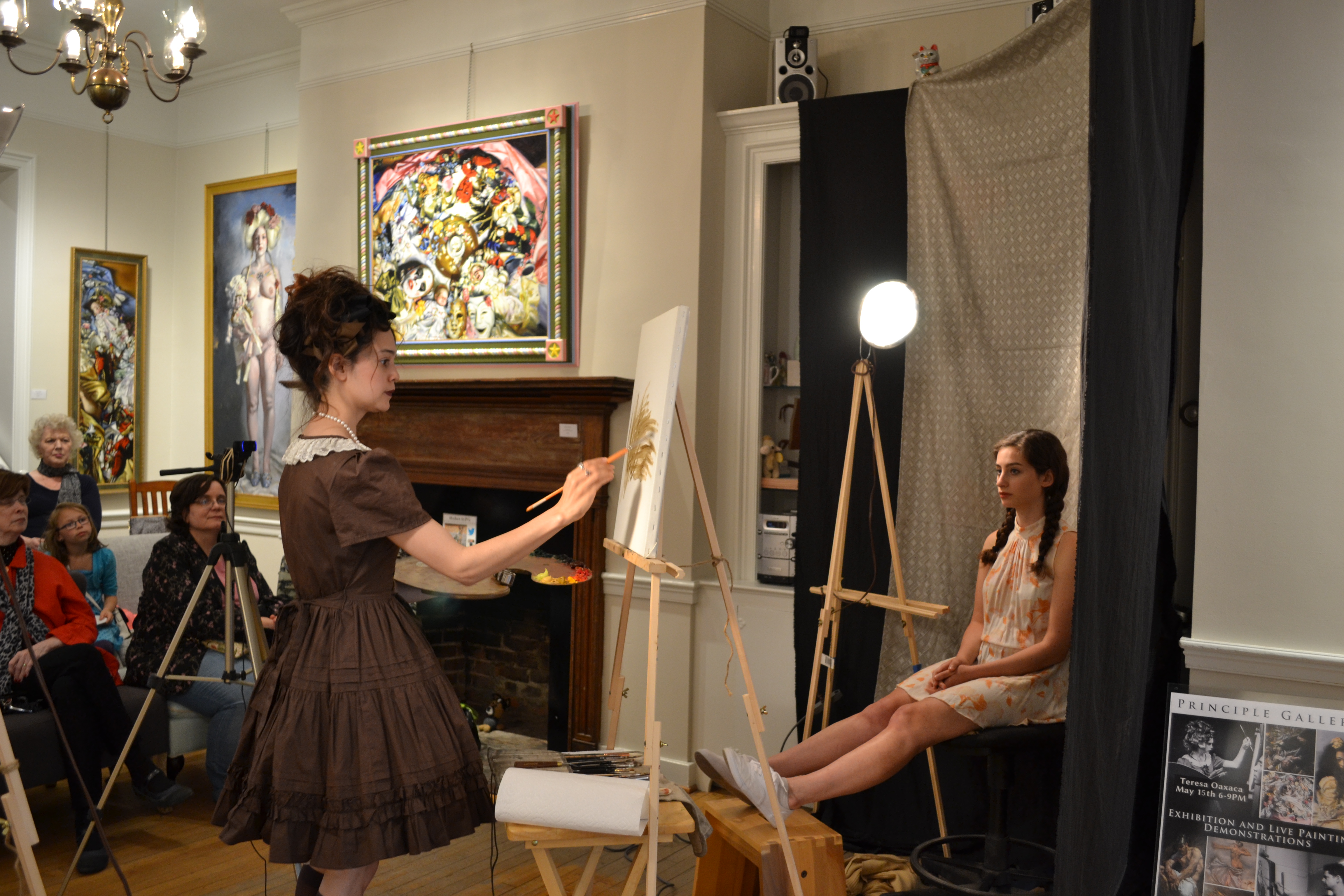 If you’ve ever made it to one of our live painting demonstrations, or the Face Off events each summer, you have no doubt seen for yourself the application of the imprimatura layer. On Friday, when we gathered to watch Teresa Oaxaca’s live demonstration, she began with a truly blank canvas.