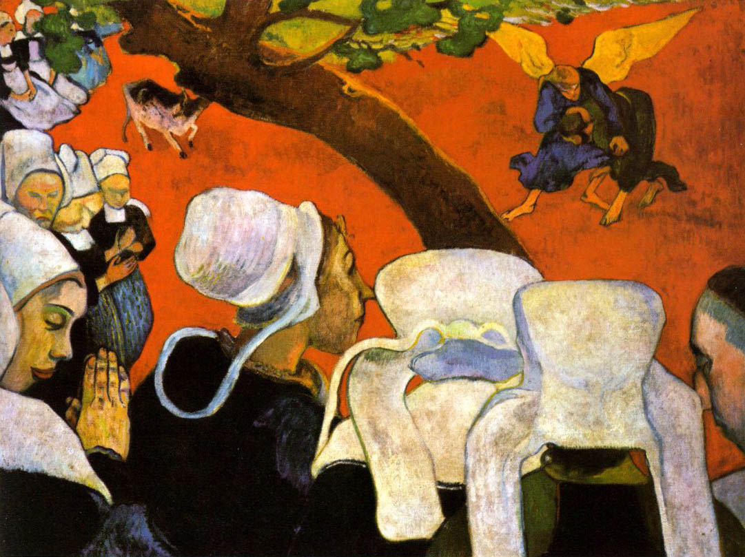 Gauguin’s work began to reflect the influence of Japanese art like that of Hokusai, and works like his painting “The Vision After the Sermon” mark the introduction of the arbitrary color trend into European art.