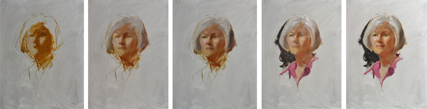 And here is a collage to show you the stages of painting during the amazing live painting demonstration! We hope to have many more live demonstrations during the Saturday after the opening of upcoming shows–keep an eye out for announcements!