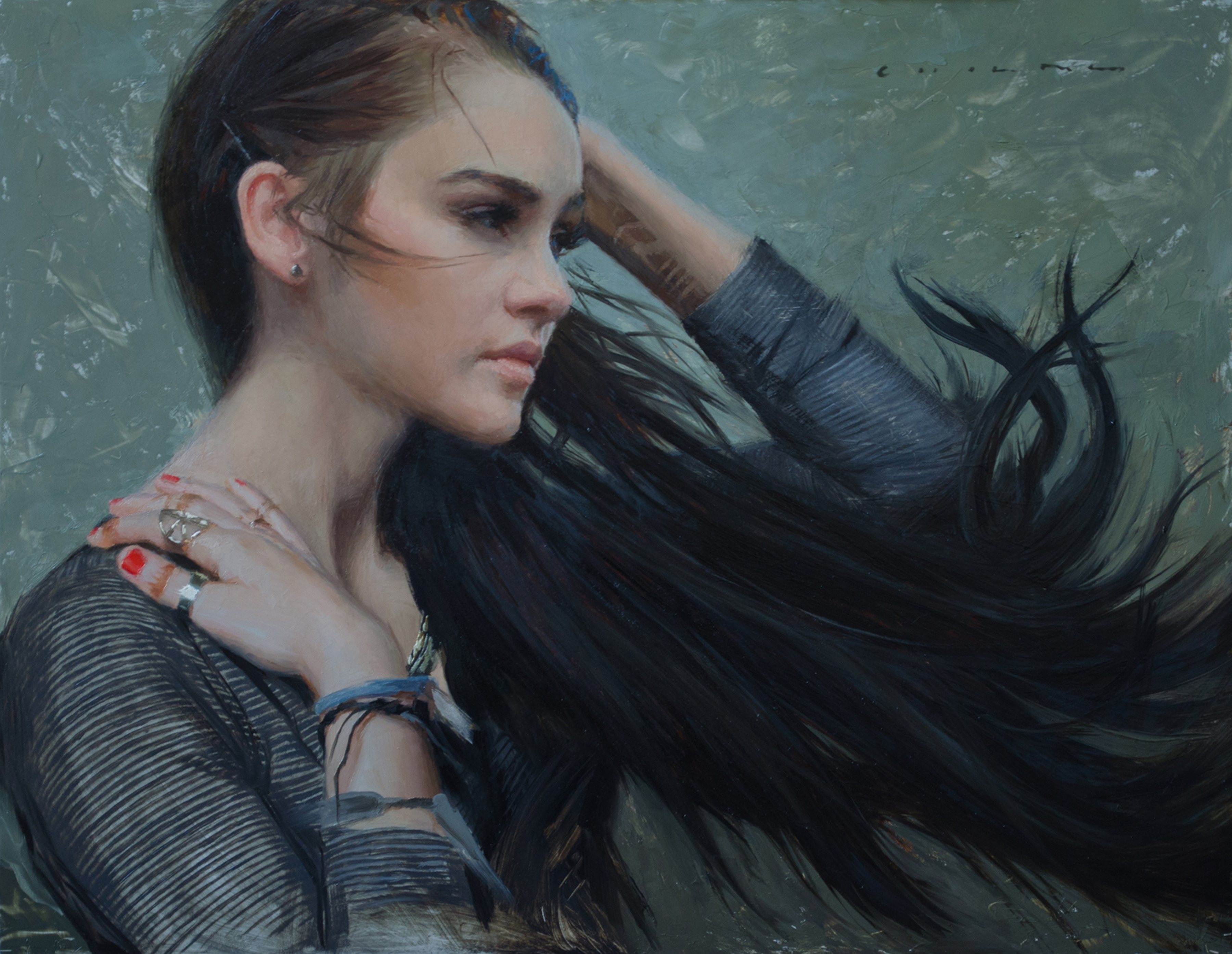 The other two events from this past week involved the opening of Casey Childs’ solo exhibition, “Observations.” Friday night, we held an opening reception for the incredible show, which features brand new oil paintings, alla prima oil sketches, and stunning charcoal drawings. We were so pleased to have Casey himself join us for the opening, not to mention come back the following afternoon to give a live oil painting demonstration in the gallery! We watched fascinated as in just over three hours, Casey painted a beautiful portrait from a live model. Check here to see Casey’s whole show, including these beauties:
