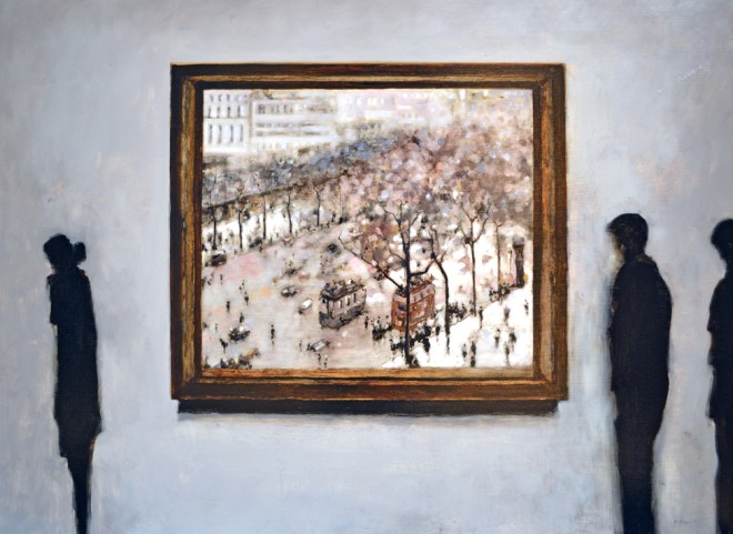 If you happened to see Geoffrey Johnson’s fantastic solo exhibition last year, then you might remember “American Wing” and “American Wing II,” two paintings depicting figures observing paintings within a museum: