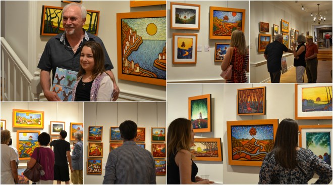 Thank you so much to everyone who joined us for the opening reception of the GC Myers solo exhibition “Truth and Belief” last evening! It was a wonderful turnout and we’ve had such an exciting amount of sales so far in the show. We love giving you all the chance to meet and chat with the incredibly talented artists that we represent, and the artists love it as well. Last night, as you can see up at the top left here, we even had a young budding artist present GC Myers with some of her own artwork inspired by his paintings! If you weren’t able to make it last night and you’d like to meet GC Myers, you’re in luck– he’ll be back in September for an artist talk, so be sure to follow our social media pages or join the mailing list to be reminded of the date!