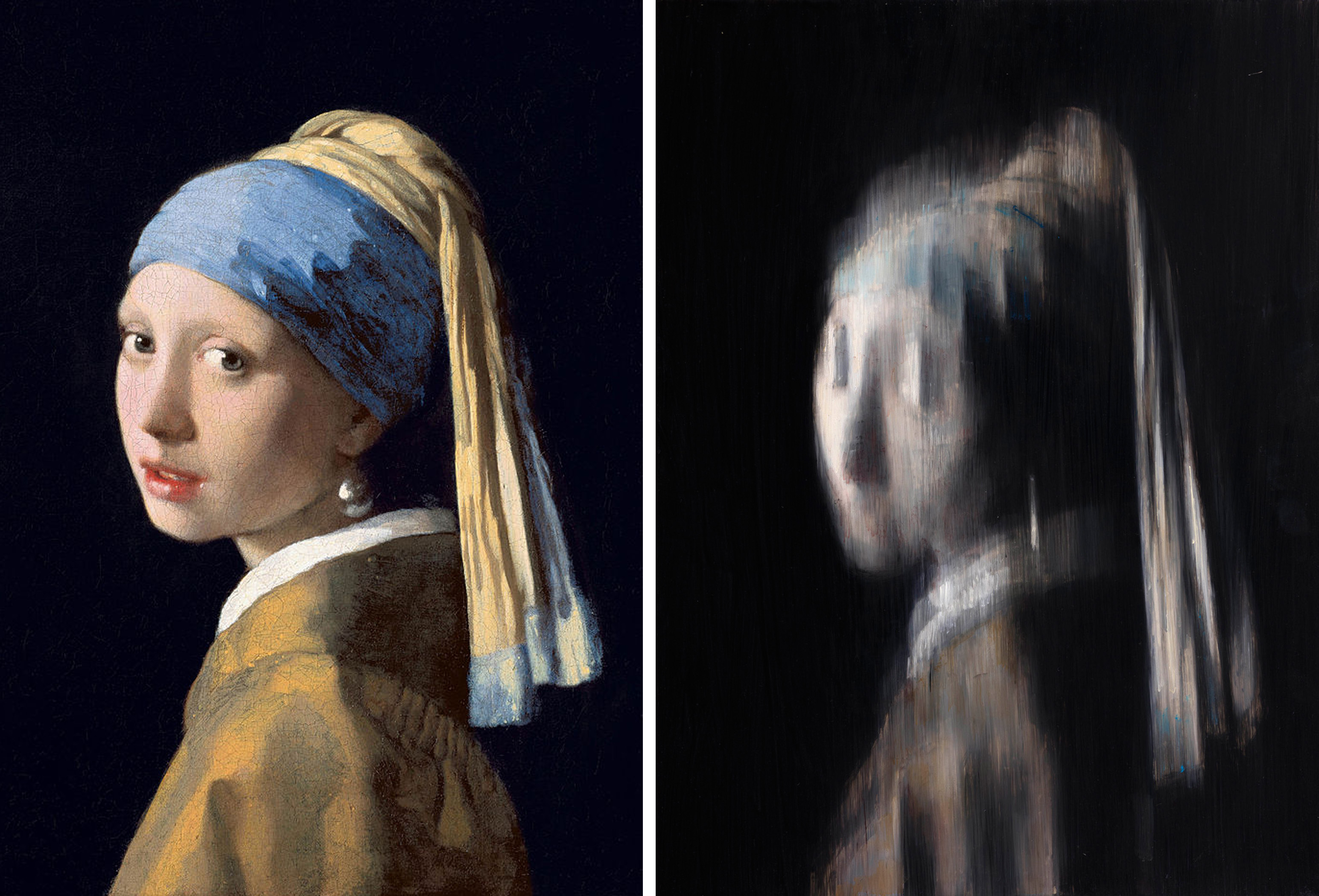 Two years ago, Principle Gallery held an exhibition featuring artists Valerio D’Ospina and Greg Gandy, and titled the show “Tempo and Pause”– this was indeed a reference to the contrast and variety of rhythm found in the works of these two painters. We’ve just opened another exhibition this year featuring these two incredible artists, and the contrast in rhythm is just as striking and fascinating! Both artists make use of this Principle of Design, with incredibly different methods and incredibly different results. If you haven’t yet, we highly recommend coming to see it in person! If you’re unable to, however, definitely make sure to check out the whole show on our website here, and email us at info@principlegallery.com for a full digital PDF preview. Once again, take a look at some of the works in the show and keep rhythm in mind– the variety and intricacy is fascinating! (I’ll also throw in a comparison between Vermeer’s “Girl with a Pearl Earring” and Valerio D’Ospina’s blurred homage to it– very different rhythms!)