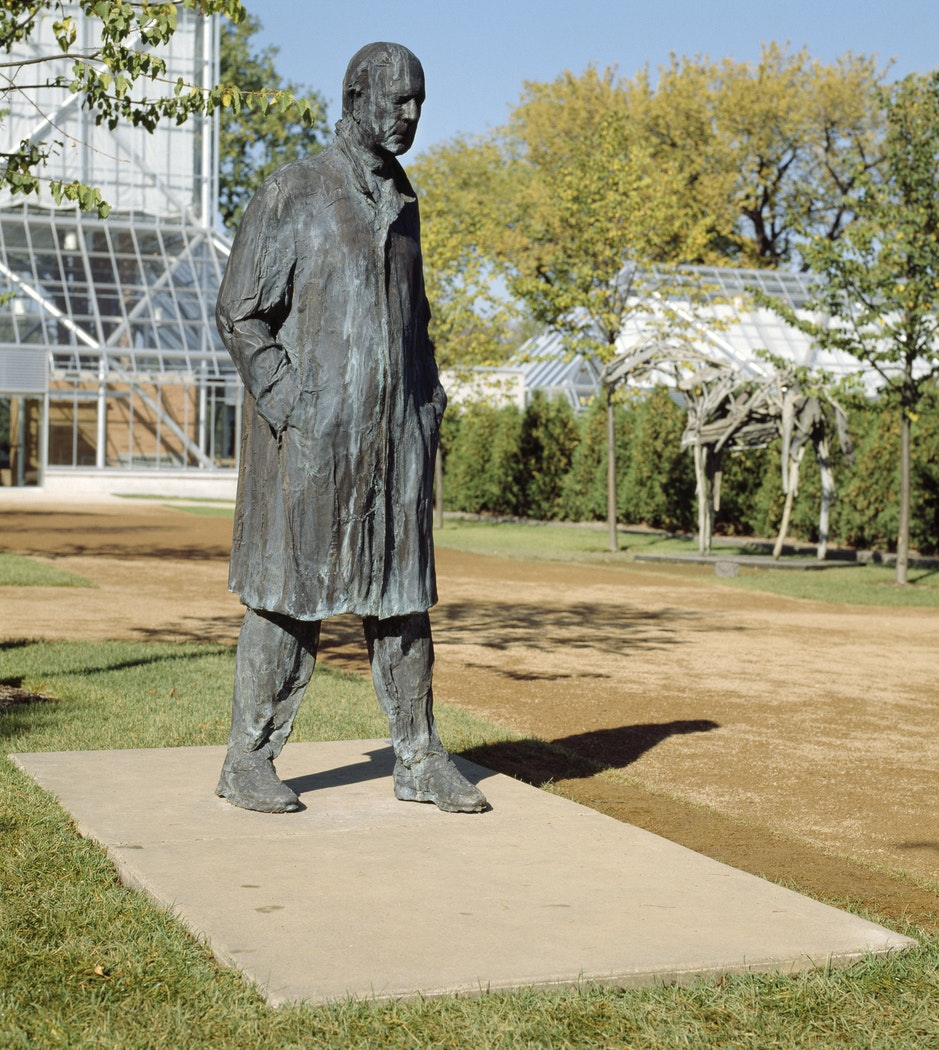 George Segal’s Walking Man (1988) requested by the Clinton’s for the exhibition “Twentieth Century American Sculpture at the White House” held in the First Lady’s Garden (remained on view 1994-96). | from: the Walker Art Center