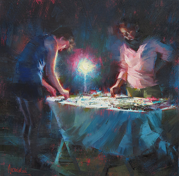 Jennifer currently resides in Glendale, CA with her husband Ben Fried and a magically inclined Calico cat named Sesame. We currently have three of Jennifer McChristian’s paintings in our Annual Small Works Group Exhibition! They’re on display now!