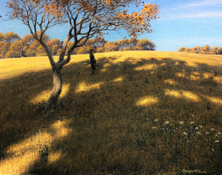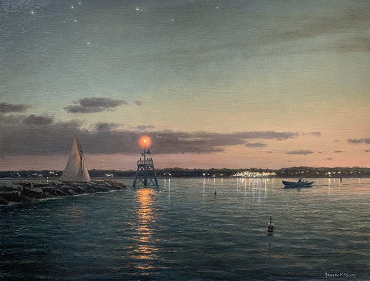 Joseph grew up working with his father, James McGurl, who was a muralist and Joseph’s most influential teacher. Joseph graduated from Massachusetts College of Art; he studied in England and Italy. After college, he worked for a period as a yacht captain, sailing the east coast from Maine to the Caribbean while continuing to observe, interpret, and paint the natural world. In search of a more solid training in drawing, he sought out Robert Cormier, a devotee of the French Academy methods and for two years studied sight size figure drawing under him. Joseph synthesizes academic figure drawing skills with sight-size landscape painting resulting in a new and unique approach to addressing the landscape.