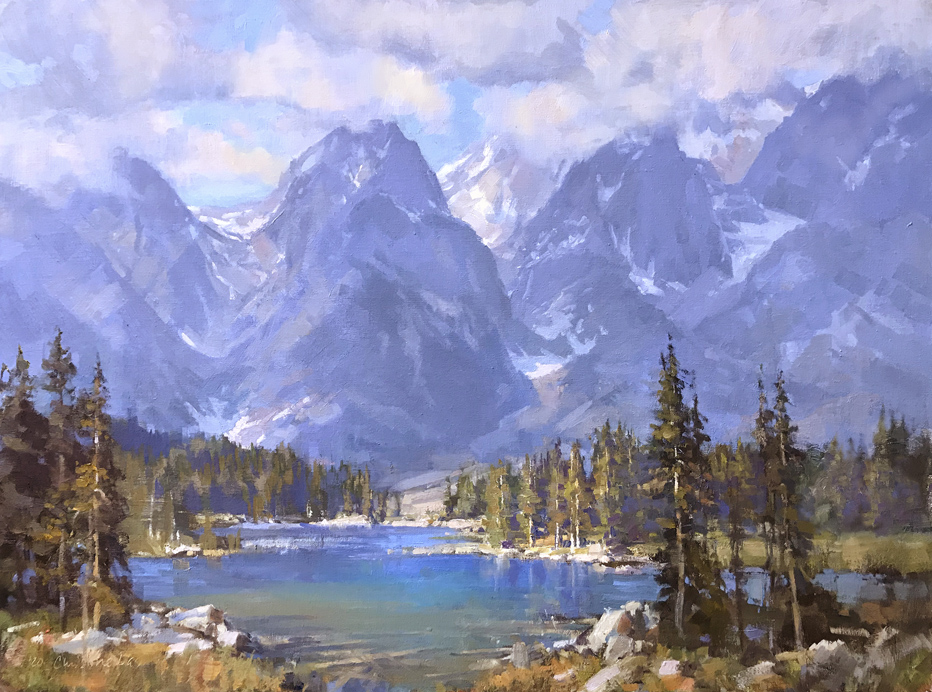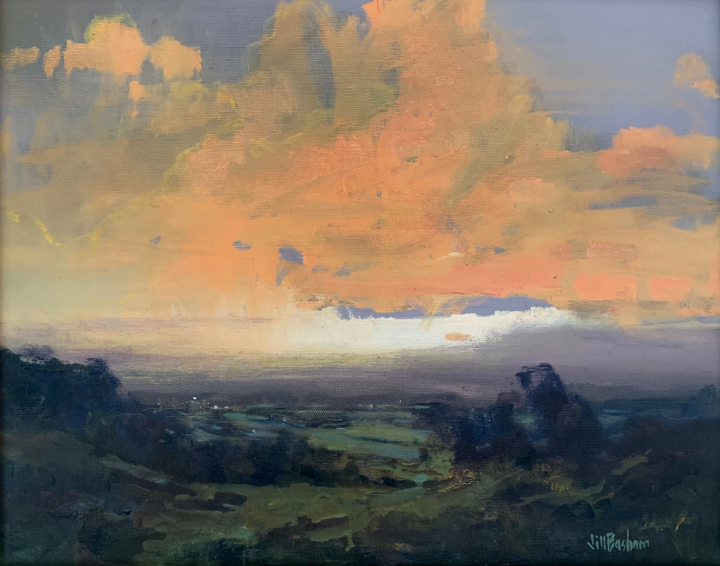 “I have always been at home under the open sky. To try and capture in paint the beauty and mystery of nature is a joy like no other.” says Jill “It is like coming home, I enjoy painting expansive views! I often work to show extreme depth in a scene because I want the viewer to feel as though he or she can see for a great distance when viewing my paintings. There are a few steps in order to accomplish this appearance. I keep the warmer tones in the foreground, cooling and graying as the scene recedes. It helps to have a focal point that draws the viewer’s eye far into the distance with this sort of scene.”