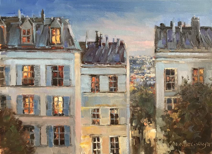 We will be open from 10 am until 8:30 pm this evening and two of the artists are planning to join us (weather permitting). Over thirty works depicting scenes from California, Paris, Georgia, Charleston, and other locations will be on display and you won’t need a plane ticket or your passport!
