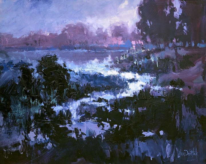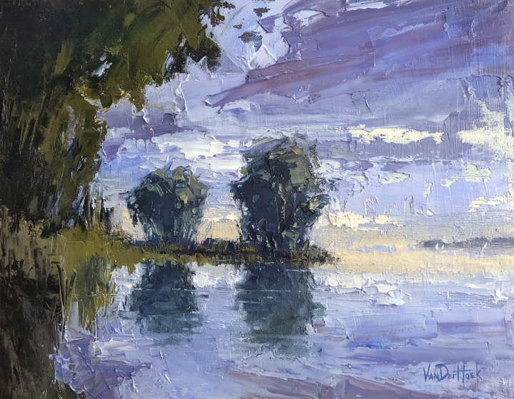 Kim says, “It is my hope that when you view my painting from across the room, the large shapes make a strong visual statement that allow you to easily see what the subject is, then, upon closer inspection, you find yourself lost in the paint texture. I am always striving to elevate the scene I am painting in order to show the viewer the every-day beauty surrounding us. In each painting I aim to accurately represent the subject while allowing the paint to have an equal voice and a strong presence.”