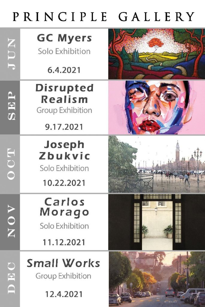 We have one more exhibition coming up next month before we take a quick break. Friday, June 4th we welcome back GC Myers for his 22nd solo show with us! After that exhibitions return in September, our show schedule is below.