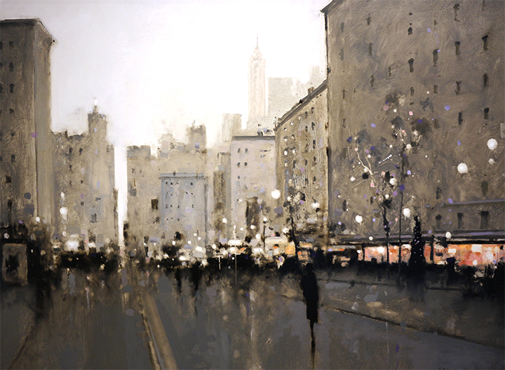 For more than two decades, Johnson has mesmerized viewers with his quietly introspective paintings that capture the mood and character of the contemporary urban landscape as well as timeless interiors. Using an impressionistic style, Johnson’s work lies in that seductive space between realism and abstraction. Much like Hopper before him, Johnson’s paintings evoke the isolation and loneliness of the big city. Or the moodiness of a private space.