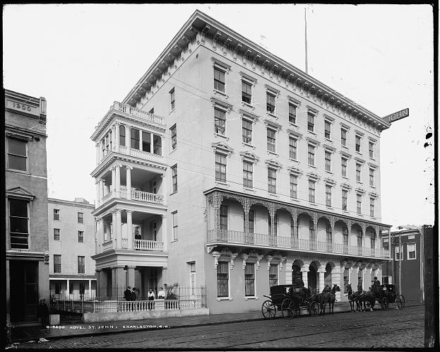 The Mills House Hotel was built by local grain merchant Otis Mills and opened in 1853. The 180-room hotel was designed by architect John E. Earle and cost $200,000. The hotel survived the destruction of much of the city in the Civil War and was later renamed the St. John Hotel at the turn of the twentieth century. When President Theodore Roosevelt visited the South Carolina Inter-State and West Indian Exposition in 1902, he stayed at the hotel. It gradually declined as newer hotels opened, and was finally sold at auction in 1968 to Charleston Associates (Richard H. Jenrette, Charles D. Ravenel, and Charles H. P. Duell).