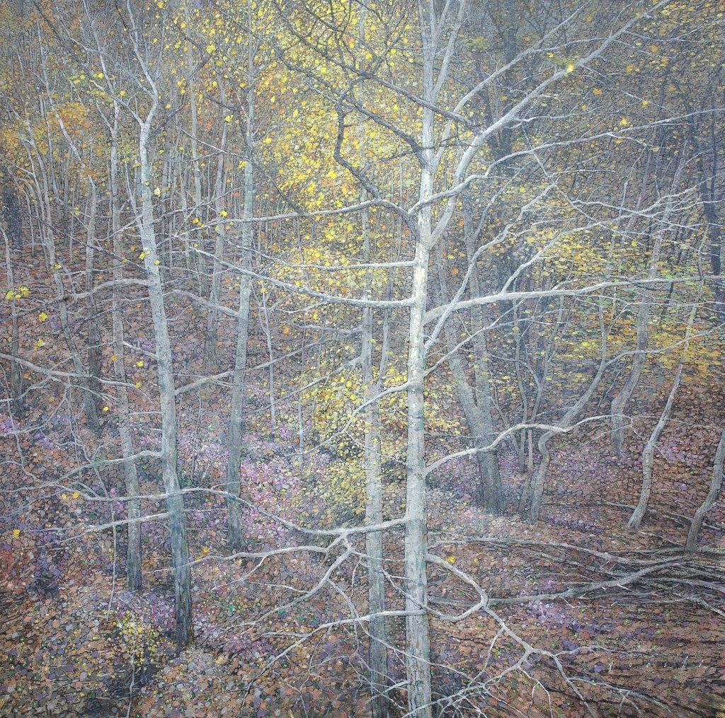 “A few years ago, I came upon some books which confirm that trees, particularly in wooded settings, communicate with one another through root systems and fungus. I spend a lot of time walking in the woods as a living, thinking, interconnected system, perhaps not unlike the human mind. Most of the work in this show investigates that perception-that not unlike the mind, woods are self-contained interiors, while at the same time, infinite in scale and complexity.”