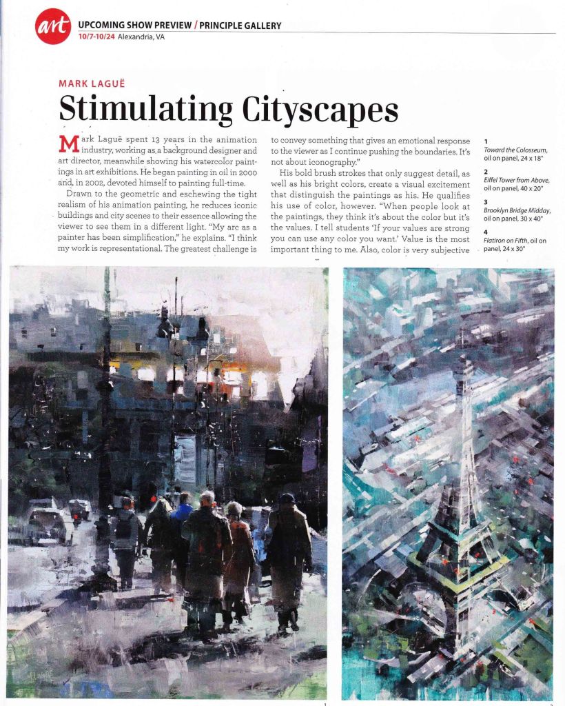 Mark has developed an international reputation and has won numerous awards, both in his native Canada and in the United States. A dedicated painter, Mark Laguë was born in Lachine Quebec in 1964. Upon graduation from Montreal’s Concordia University in Design, Mark embarked on a 13-year career in the animation industry, working primarily as a background designer and art director. During this time, despite working full time, he began receiving international acclaim for his watercolour paintings through competitions, juried shows, and solo exhibitions. In 2000, Mark switched to oil as his primary medium, and in 2002 made the jump to full time painter. As an artist he is a realist, who is open to virtually all subject matter. What keeps him excited about painting is his endless quest to simplify and get to the essence of whatever he paints.