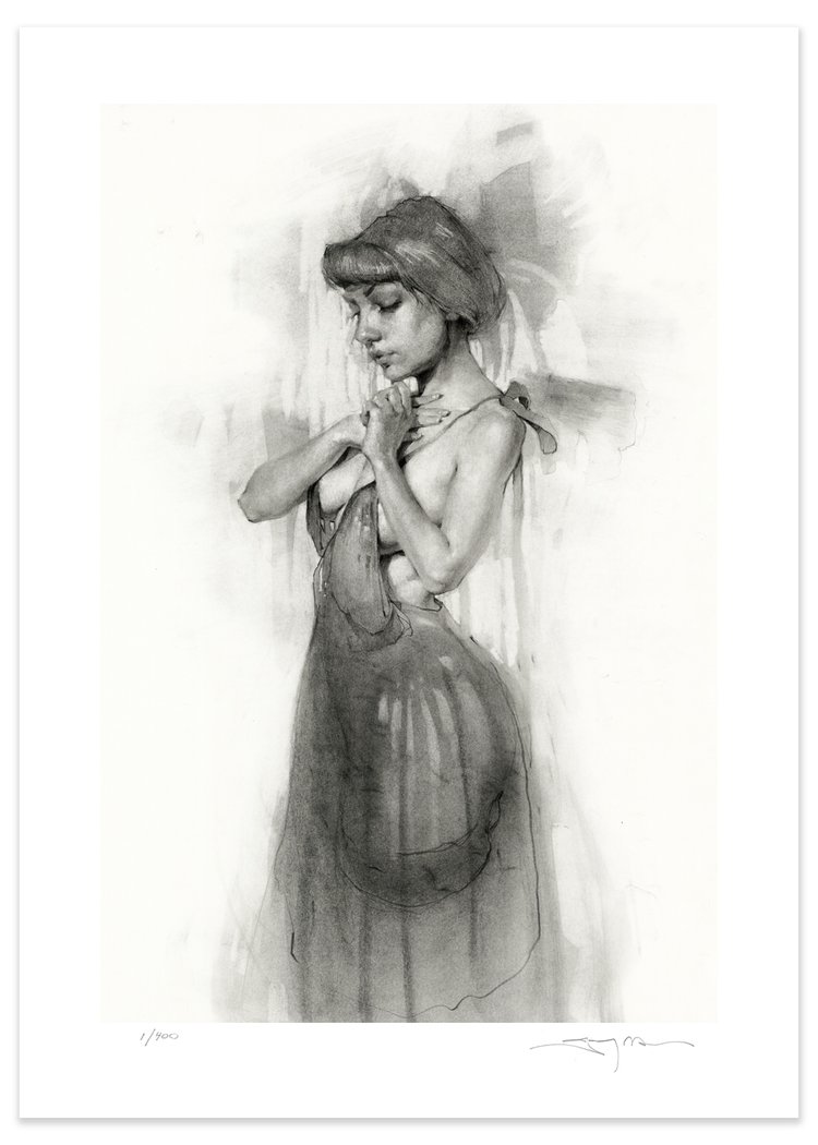 EXIS is a high quality archival print of an original Jeremy Mann drawing. It’s printed on 100% acid free cotton fine art paper and only 400 editions were made. The print measures overall 14×11 inches and the image itself measures 11×8 inches, they are not framed. Priced at $50 and 100% of the proceeds go to Humanitarian Aid for the War in Ukraine. Your gift will keep on giving!