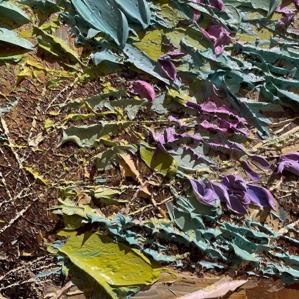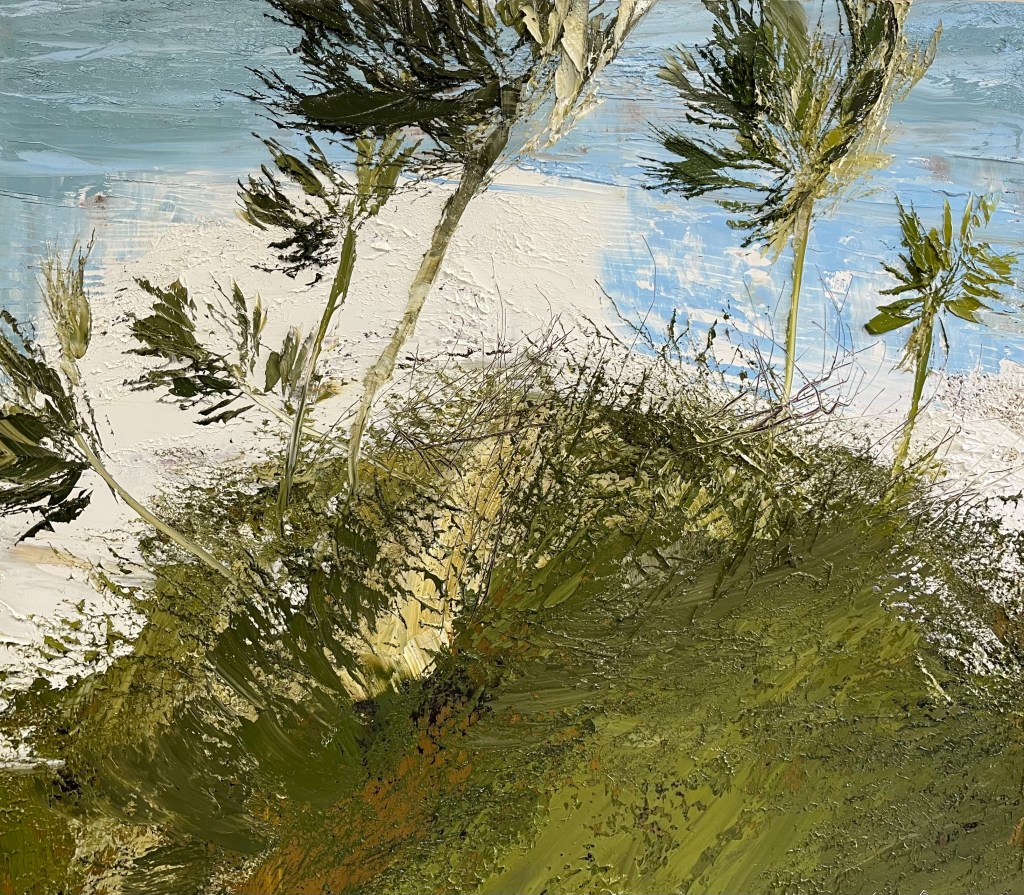 “Paint resists a brush. Using a blade, the paint responds immediately. Once an artist accesses the power of paint, the possibilities explode. It takes practice to stay on your game though.”