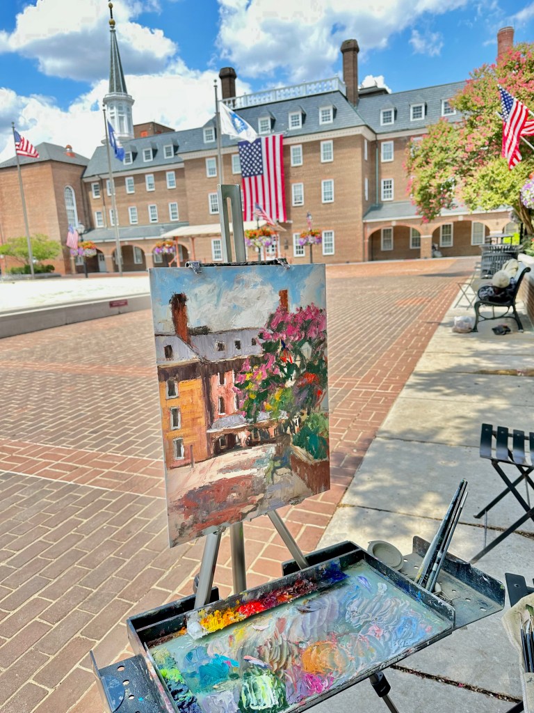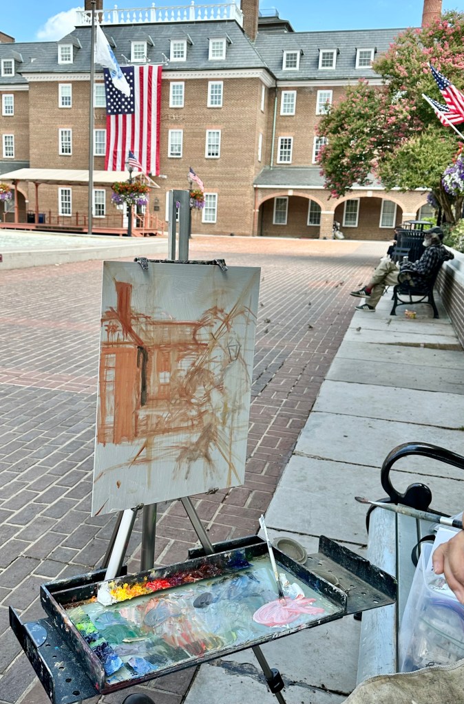 In conjunction with the opening of the National Oil & Acrylic Painters Society (NOAPS) Best of America Exhibition, the organization (NOAPS) hosted a plein air competition. Participating artists had the opportunity to venture around Old Town Alexandria and find locations to paint, they had two days to complete their work.