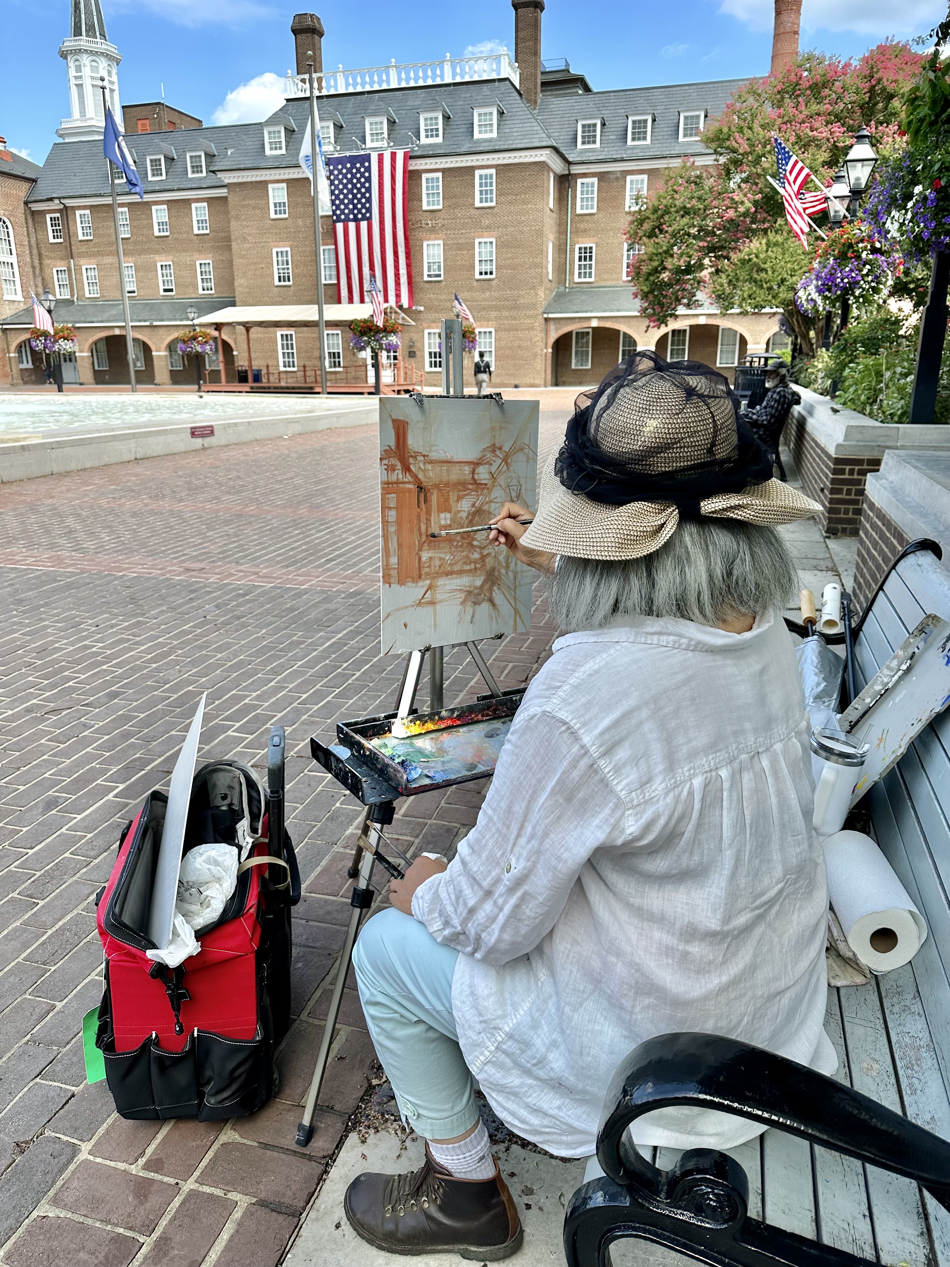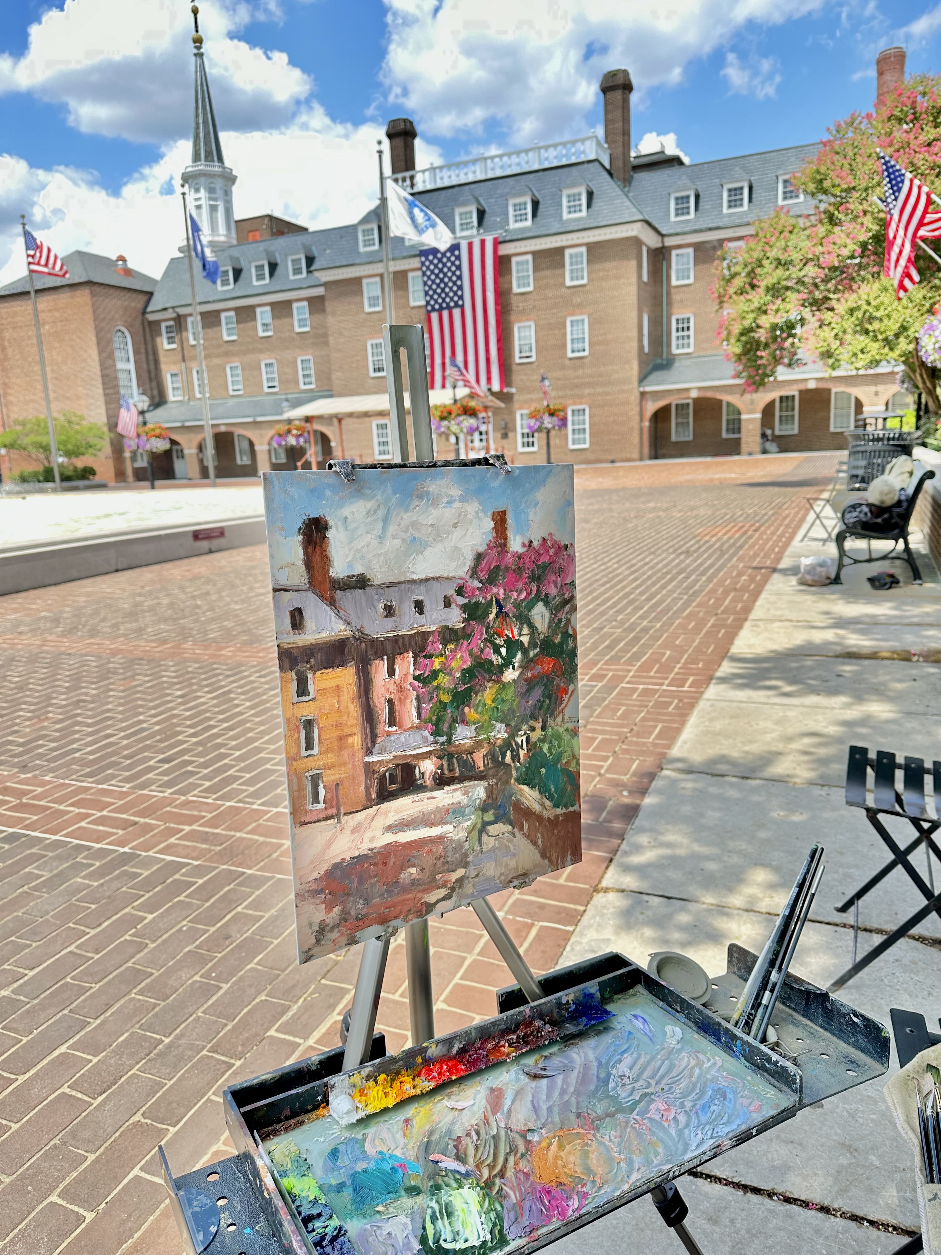 In conjunction with the opening of the National Oil & Acrylic Painters Society (NOAPS) Best of America Exhibition, the organization (NOAPS) hosted a plein air competition. Participating artists had the opportunity to venture around Old Town Alexandria and find locations to paint, they had two days to complete their work.